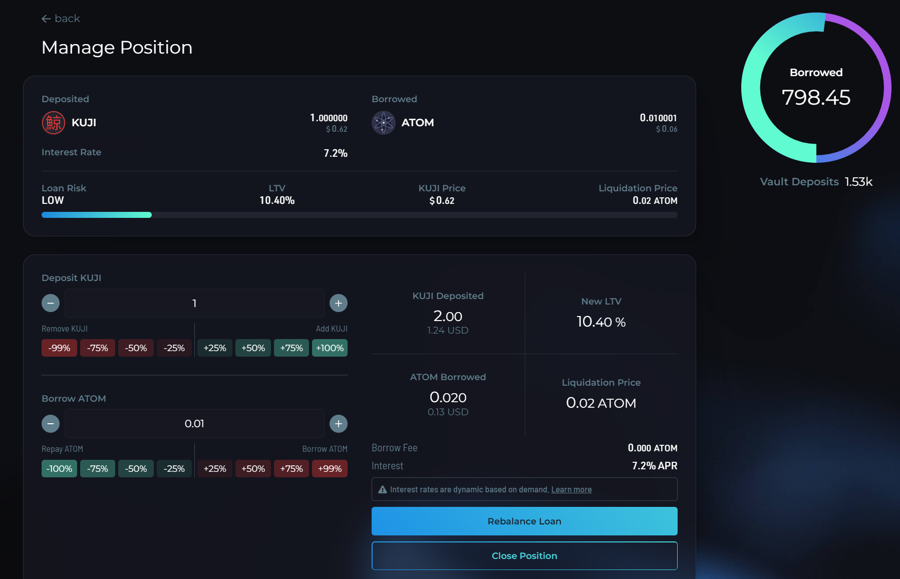 Furthermore, there are options to rebalance your loan or close the position entirely.&#x20;
