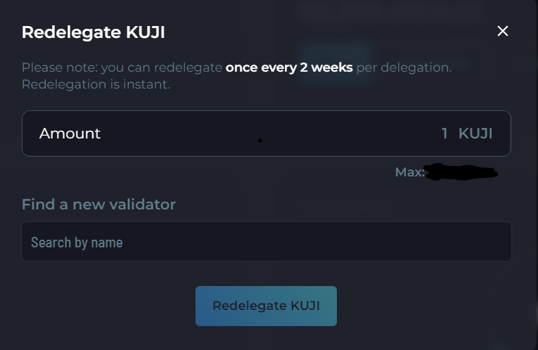 Finally click *Redelegate KUJI* to finish the process.&#x20;
